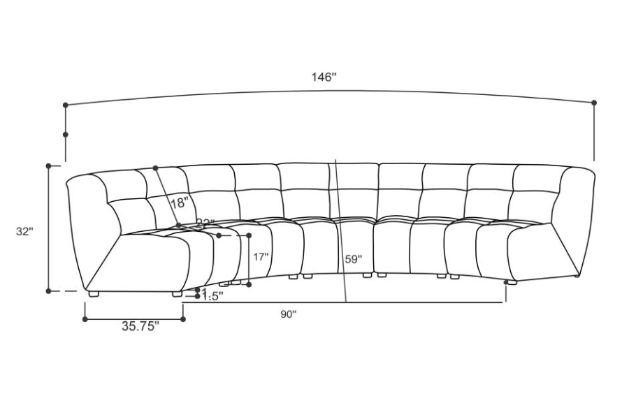 | Make a living room or media room the favorite choice for guests and family with a five-piece sectional sofa with minimalism and sophistication woven into its streamlined design. The sectional sofa cuts to the chase with an ultra-comfortable seating experience and subtly rounded profile, perfect for socializing. Durable ivory fabric is soft and inspiring, lending a versatile element to match or coordinate with surrounding décor. This sectional aligns eight armless pieces for a customized configuration and features contemporary design elements with plump, foam-filled framing and decorative tufting adding dimensionality and classic style. A focal point in any space, the sectional sofa accommodates several visitors and adds a low-key, easy motif. | |