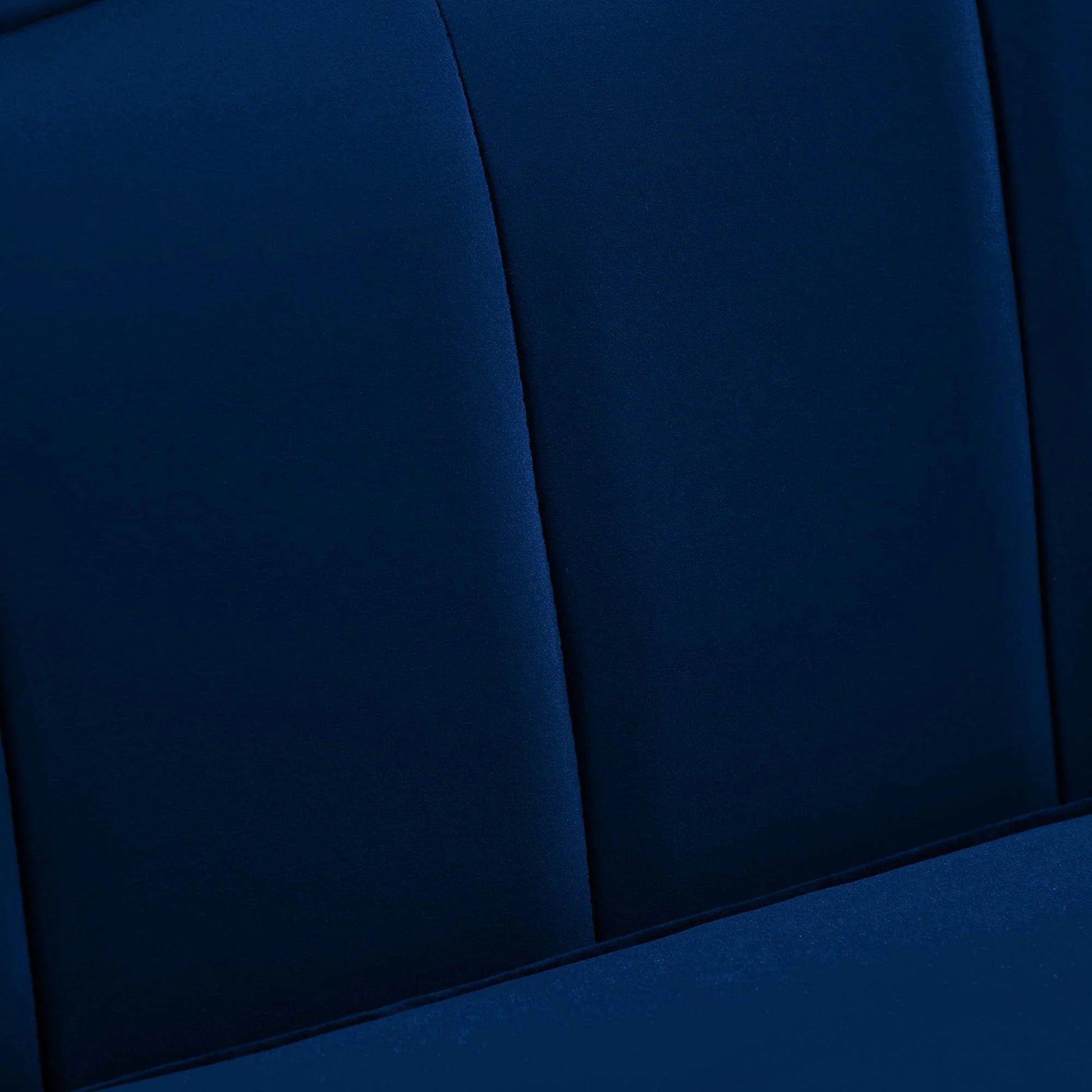 Sink into luxurious comfort and eclectic style with the Cheshire Channel Tufted Performance Velvet Sofa. Putting a glam deco twist on Victorian design, this velvet sofa features organic lines and a unique curved back design that's perfect for lounging. Covered in soft, stain-resistant performance velvet, this upholstered sofa is complete with dense foam padding, removable seat cushion, and a sinuous spring support system to offer a premium seating experience for you and your guests. Resting atop brushed gold stainless steel legs with non-marking foot pins, this Parisian-inspired sofa makes a bold statement in the living room, home office, lounge space, or bedroom sitting area. Sofa Weight Capacity: 992 lbs.