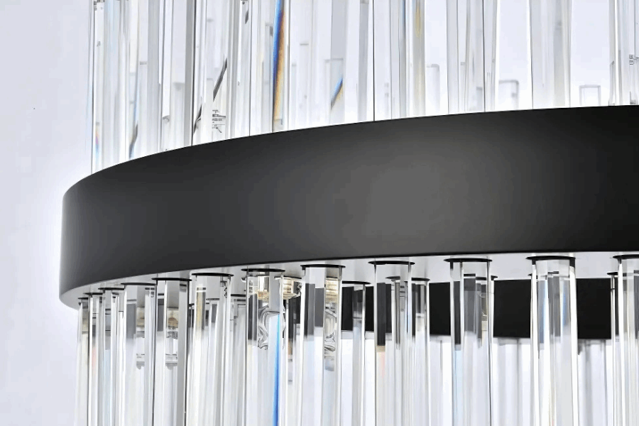 This stately fixture combines timeless elegance with modern and attractive sophistication. The delicate juxtaposition of upright and hanging clear glass rods creates a truly stunning visual statement, seamlessly woven together within a sleek gold frame. This expressive piece would be a welcomed and treasured addition to a wide range of contemporary residential styles.