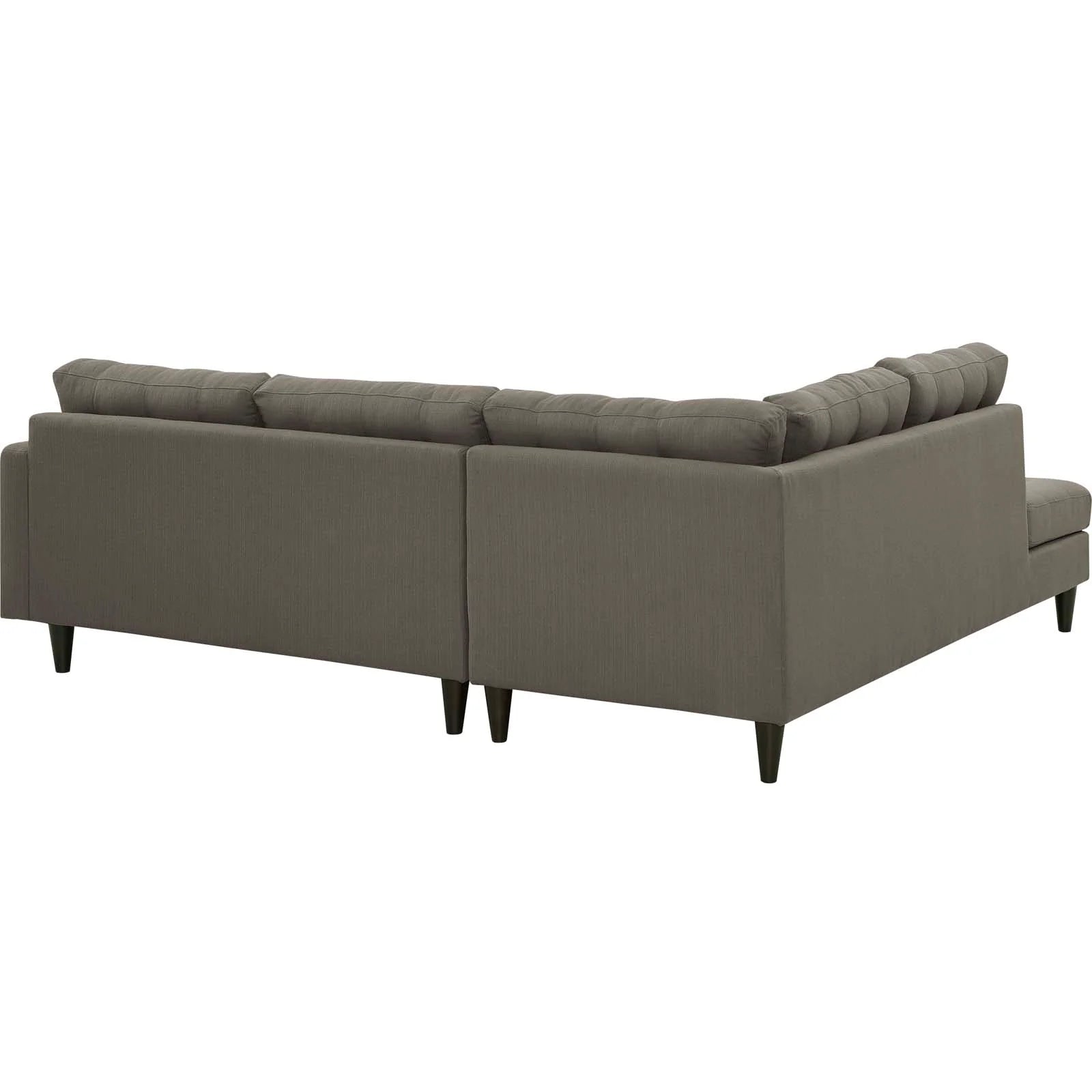 End the rule of unjust sovereignties that wage a useless war for your interiors. Empress Button Tufted Upholstered Fabric Sectional Sofa Set leaves the would-be heiress of holistic furnishings in the dust with a design that rivals any competitor. Empress is a 2 piece left facing bumper sectional sofa set heralded with deeply tufted buttons, plush cushions, and armrests that convey that perfect air of nobility. The solid wood legs come with plastic glides to prevent floor scratching, and support the solidly constructed wood frame of this sectional sofa set. Dense foam padding create a luxe seating experience while the durable and stain-resistant fine fabric upholstery leaves the recipients feeling richly rewarded. Maximum Weight Capacity: 660 lbs.