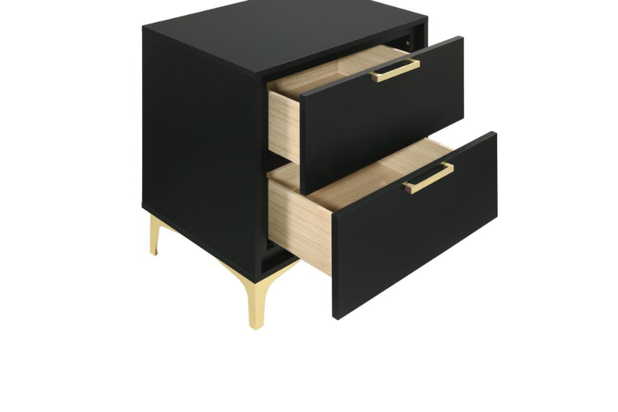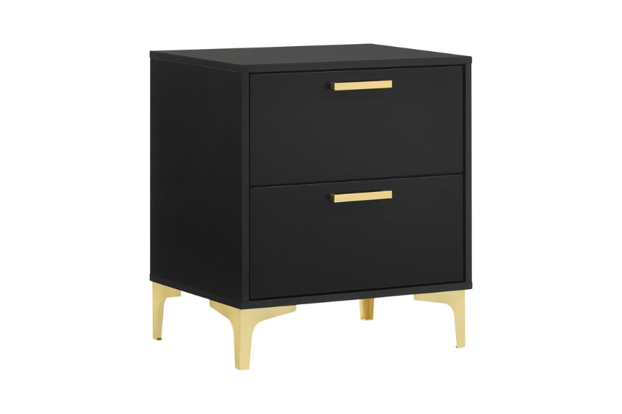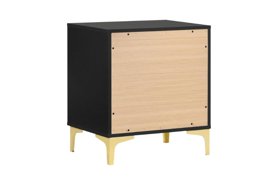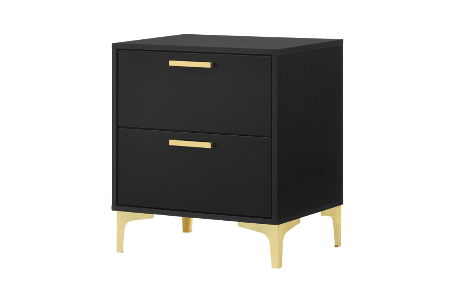 - Gold finished bracket legs create a glamorous flair to reflect headboard