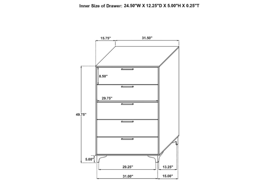 Includes: One (1) queen bed, one (1) nightstand, one (1) dresser, one (1) dresser mirror, and one (1) chest |