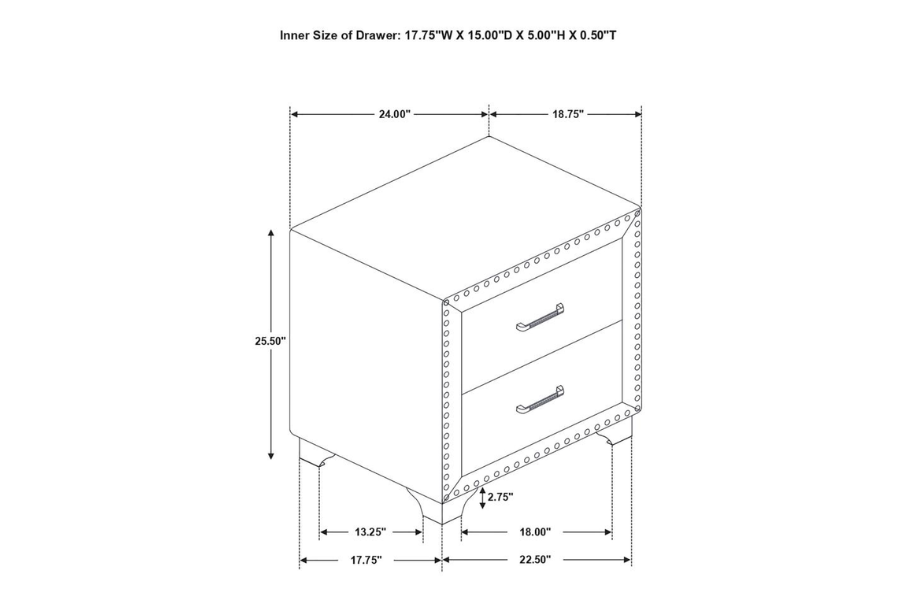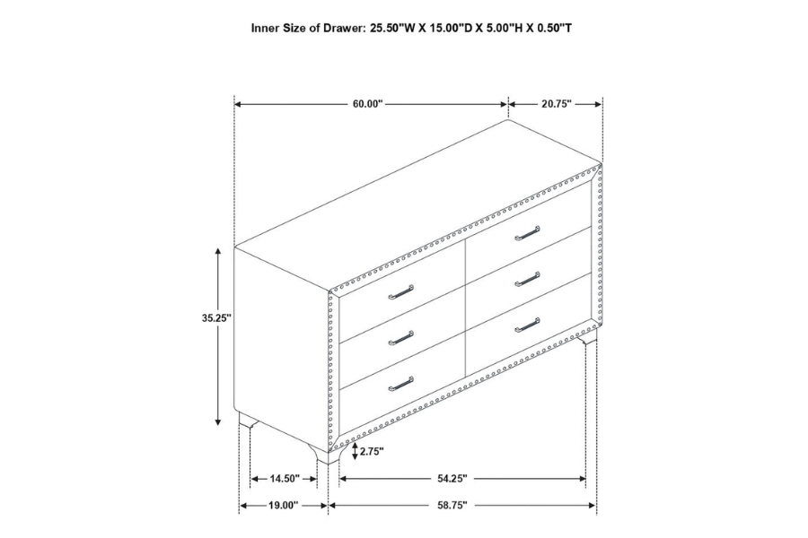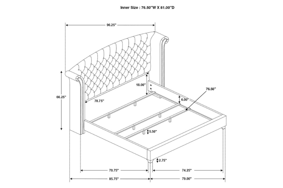 * Create a grand and glamorous feel in your bedroom with an elegance that will refresh your thoughts every time you enter * Entirely upholstered with matte velvet in options of pacific blue or grey with acrylic bling tufted buttons accented with crystal and chrome pull handles * Chrome finished metal legs and hand applied nailhead trim amplifies the design's contemporary expression * Exquisite with an impressive plush, matte velvet cover * Unbelievable value and exclusive to Coaster |