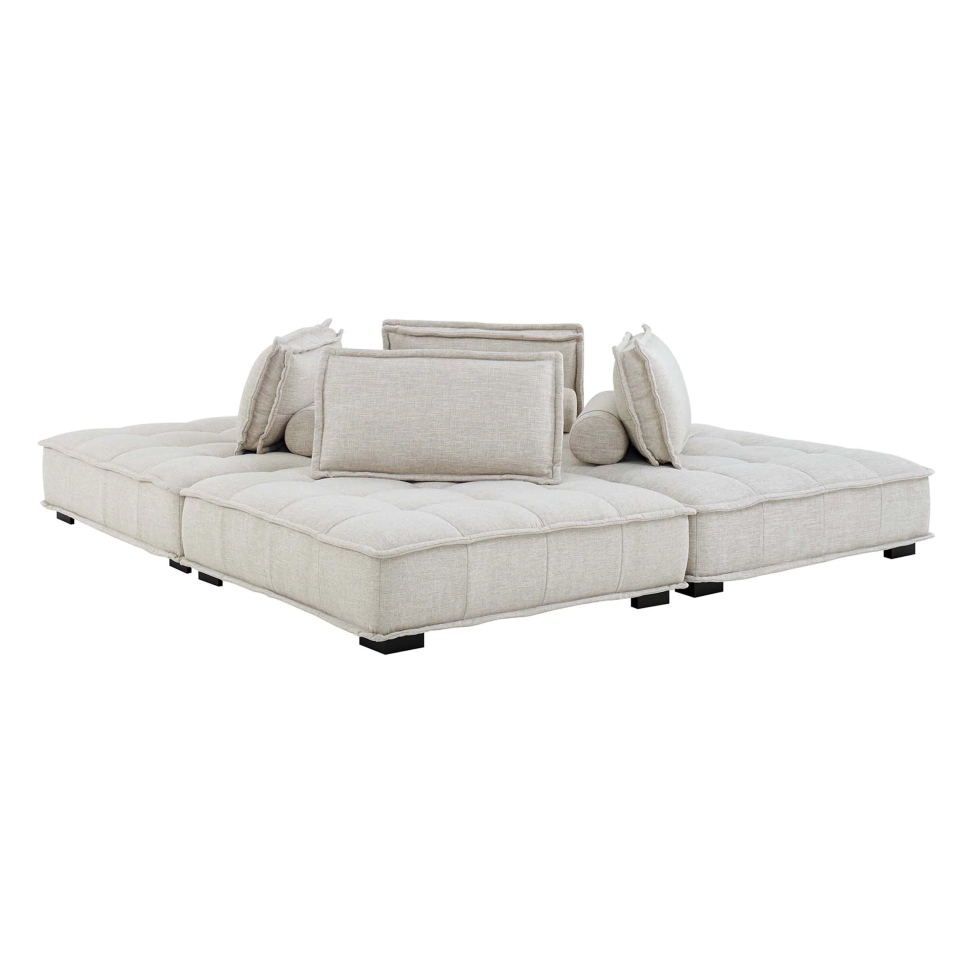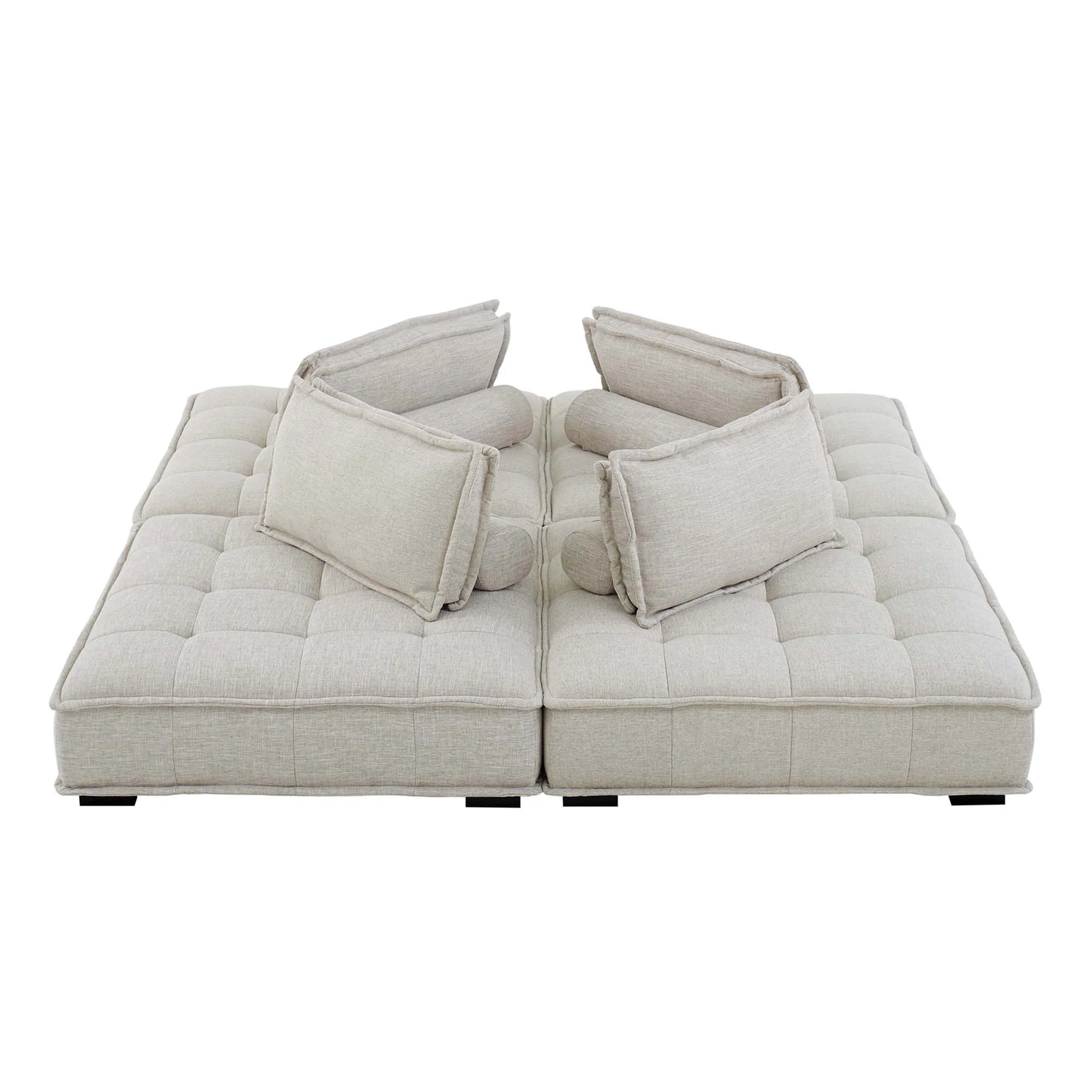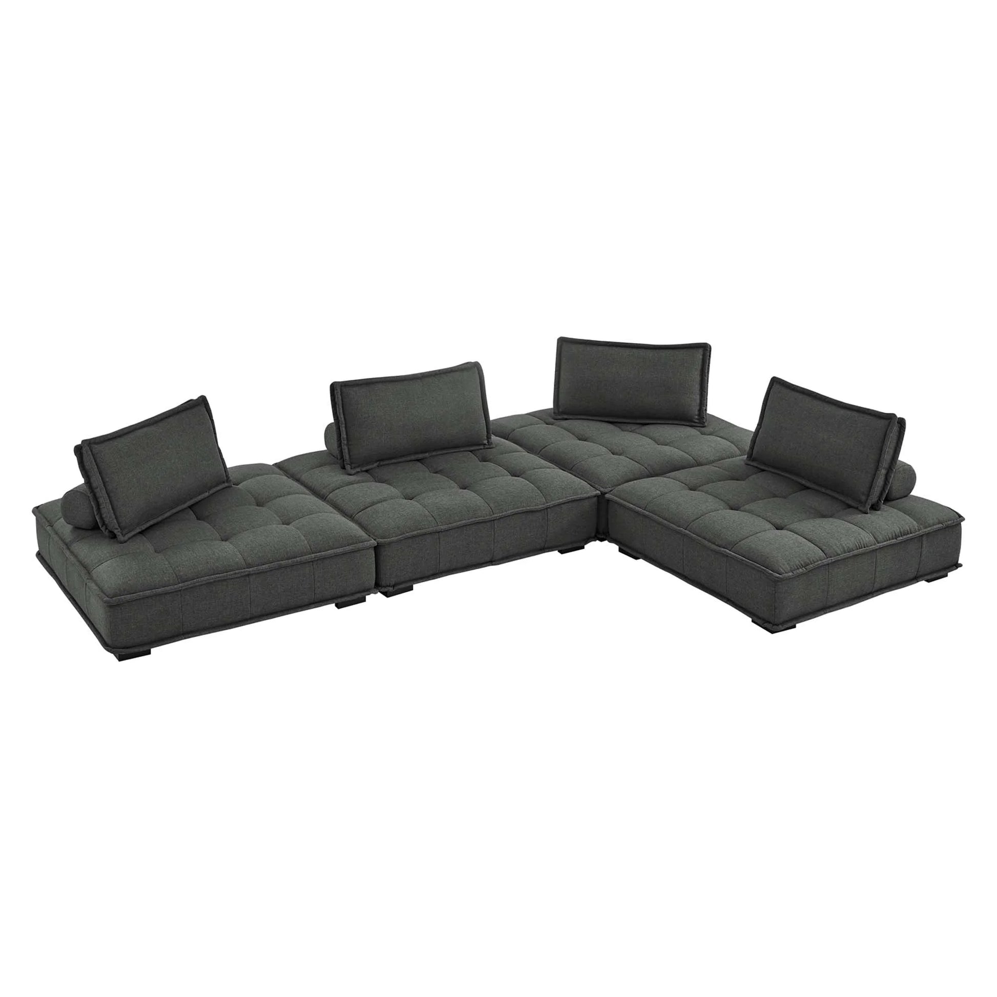Sprawl out amidst comfort and style on the Saunter Tufted Fabric 4-Piece Sectional Sofa. With square biscuit tufting, French piping detail, and soft polyester upholstery, this sectional sofa collection brings tailored style to your living space or lounge area with its charming low profile silhouette. A removable bolster pillow supporting a seat back cushion offers a comfortable place to rest while watching TV, relaxing, or entertaining. Dense foam padding and a sinuous spring support system grant a premium seating experience for all occasions. This four-piece sectional sofa rests atop L-shaped rubberwood legs with non-marking foot caps. Set Includes: 4 Armless Chairs; Weight Capacity Each Chair: 300 lbs.